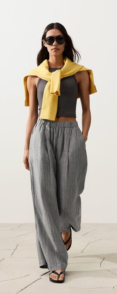 Pantalon long droit en coton chiné