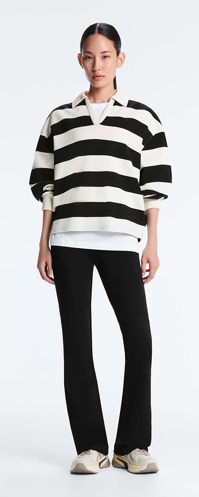 Diagonal stripe wide-leg knit trousers