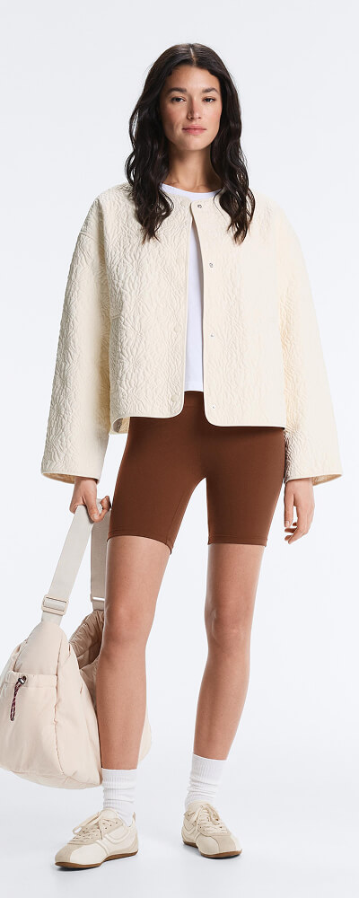 Colecția de geci pentru femei de la OYSHO este concepută pentru a oferi modele pline de stil pentru orice ocazie și pentru a te ajuta să obții performanța maximă în zilele de antrenament. Îți oferim modele de geci sport cu o croială ajustată și măgulitoare, cu țesătură tehnică ce acționează ca un al doilea strat de piele pentru a asigura confort maxim și o gamă cât mai largă de mișcare atunci când practici orice activitate fizică. Modele cu culori versatile și atemporale pentru a putea combina fiecare geacă cu ușurință. În plus, simte-te confortabil și călduroasă în sesiunile tale de antrenament datorită tehnologiei sale rezistente la apă și la temperaturi scăzute. Dacă ești în căutarea unor modele mai speciale pentru a adăuga o notă diferită stilului tău sportiv și pentru a te menține la fel de călduroasă, nu rata colecția noastră de geci impermeabile și rezistente la vânt, cu capacitatea de a te proteja de vânt și ploaie și cu o țesătură extrem de rezistentă și respirabilă, dar cu adevărat ușoară, pentru a putea continua cu rutina ta fără să îți faci griji pentru condițiile meteorologice. Găsește modele lungi sau scurte, cu o croială lejeră care îți permite să te miști liber sau mai strâmte care oferă un suport mai mare și avantajează silueta. Pentru ținutele mai călduroase atât pentru zi cu zi, cât și pentru a face activități în aer liber, îți prezentăm opțiuni de paltoane și parkas matlasate în diferite culori și croieli, cu modele în tendințe pentru a-ți completa stilul în sezonul rece. Aceste geci sunt confecționate din materiale de înaltă calitate care oferă o izolație termică excelentă, menținându-te călduroasă și confortabilă în orice moment. Găsește în colecția OYSHO o varietate largă de opțiuni. Fie că ești în căutarea unei geci ideale pentru ieșirile tale, pentru a merge la sală sau pentru zi cu zi, în selecția noastră vei găsi o opțiune excelentă pentru fiecare ocazie.